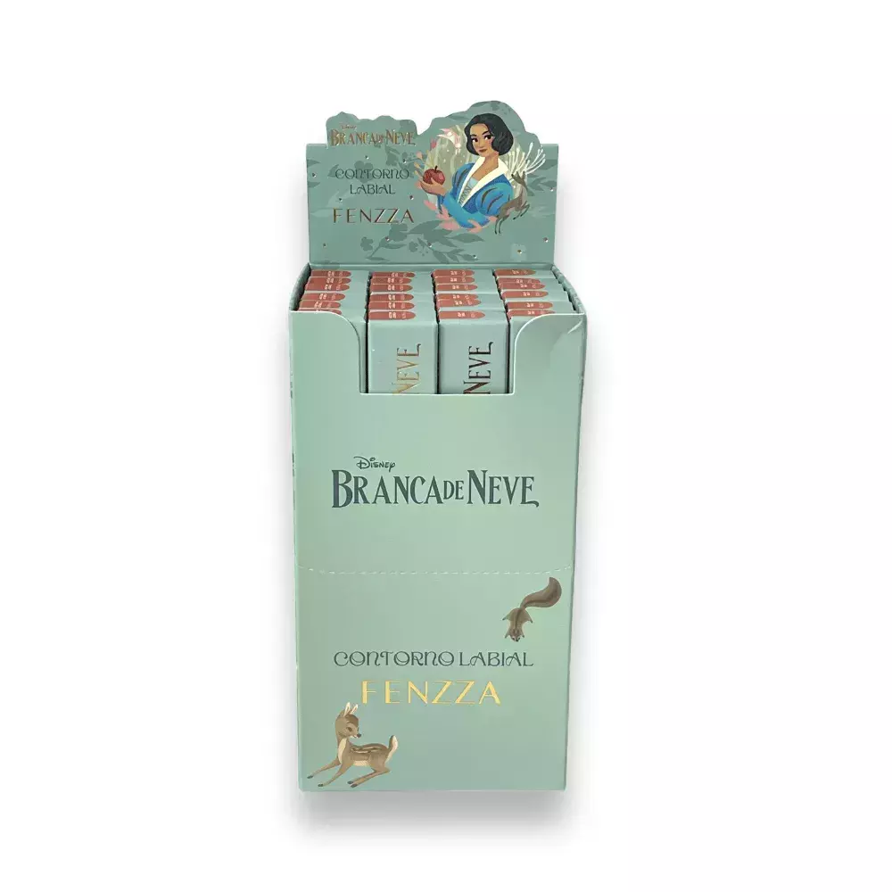 Contorno labial inspirado em Branca de Neve. Lápis apontável, de traço preciso e macio, que define os lábios com delicadeza, garantindo acabamento elegante e natural.