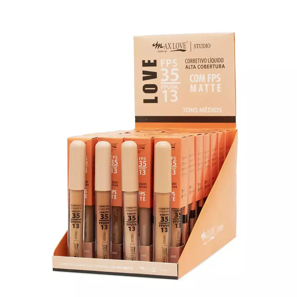 BOX CORRETIVO LÍQUIDO MATTE 35FPS 104 A 107 MAX LOVE - 28 UNIDADES