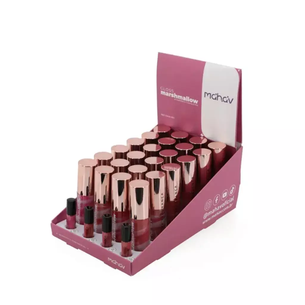 GLOSS LABIAL MARSHMALLOW MAHAV é um gloss com textura cremosa e ultrabrilhante que proporciona hidratação e conforto aos lábios, graças à sua fórmula enriquecida com manteiga de karité, óleo de coco, aloe vera e vitamina E. Com acabamento translúcido e brilho intenso, ele pode ser usado sozinho ou sobre o batom, garantindo um visual radiante e moderno. Seu design em espiral com duas cores entrelaçadas traz um toque divertido e único ao nécessaire, além de deixar os lábios com aparência volumosa e saudável.