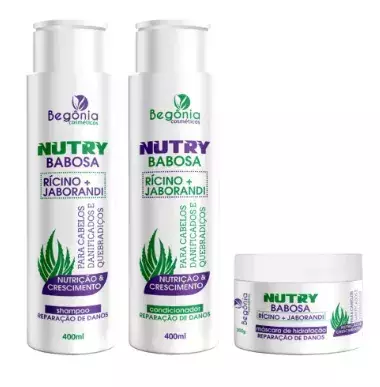 Kit Capilar 3 Itens Nutry Babosa Begônia: composto por shampoo, condicionador e máscara, esse kit oferece hidratação profunda e nutrição intensa. Ideal para cabelos secos e danificados, ajuda a restaurar a maciez, o brilho e a vitalidade dos fios, promovendo cabelos saudáveis e sedosos.