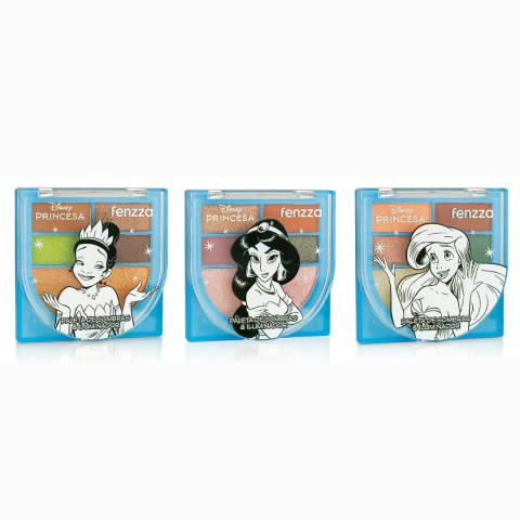 PALETA DE SOMBRA E ILUMINADOR FENZZA - JASMINE combina tons elegantes e um iluminador radiante inspirados na beleza marcante da princesa Jasmine. Suas sombras possuem alta pigmentação, textura macia e fácil esfumado, permitindo criar desde looks suaves até produções intensas. O iluminador entrega brilho sofisticado e acabamento impecável, valorizando qualquer maquiagem. Compacta, versátil e de ótima apresentação, é ideal para revendedoras, lojistas e clientes que buscam um produto de qualidade e alta saída.